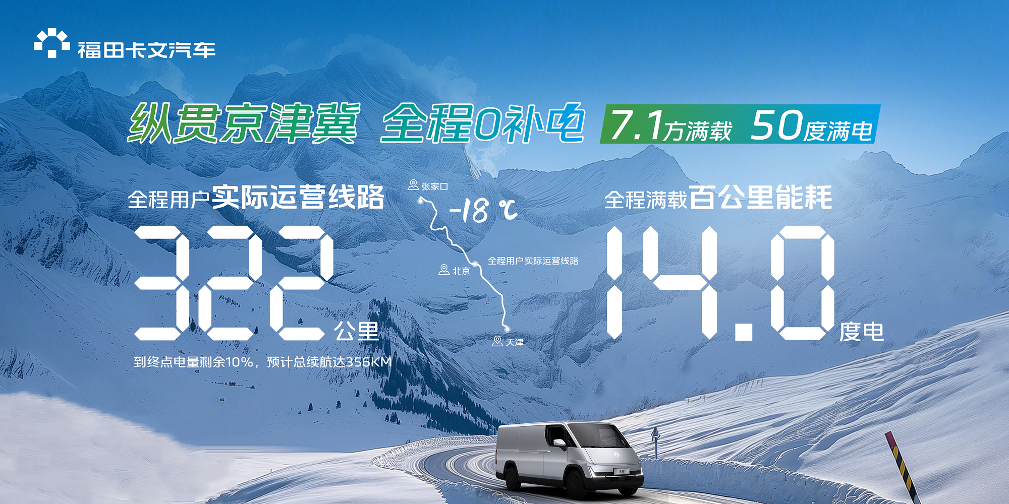 2月21日,福田卡文汽车携手中汽兄弟和VAN车用户共同开展的“福田卡文乐福能效续航挑战之旅”北线测试之“纵贯京津冀 全程0补电”挑战活动圆满结束。福田卡文乐福以用户实际运营线路续航322公里、全程满载百公里能耗14度电的惊人成绩完成了挑战!以真实用户货运作业线路,展现乐福在实际货运中卓越表现,为乐福的性能表现写下最真实、最权威的注解。