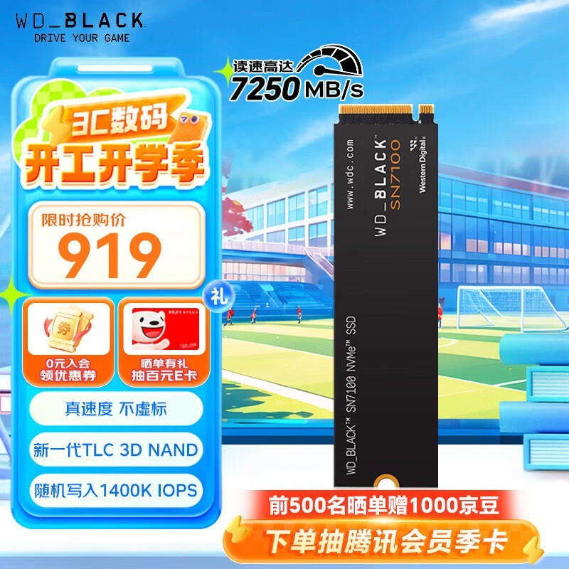 西部数据SN7100 NVMe M固态硬盘2TB仅899元