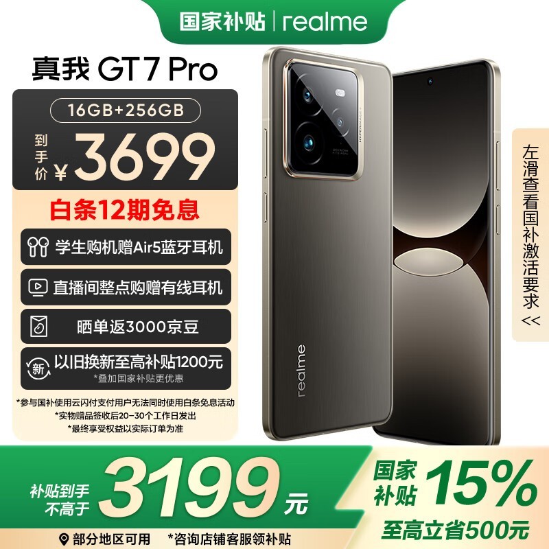 realme GT7 Pro 5G手机 16GB+256GB 骁龙8至尊版 天猫特惠3159元