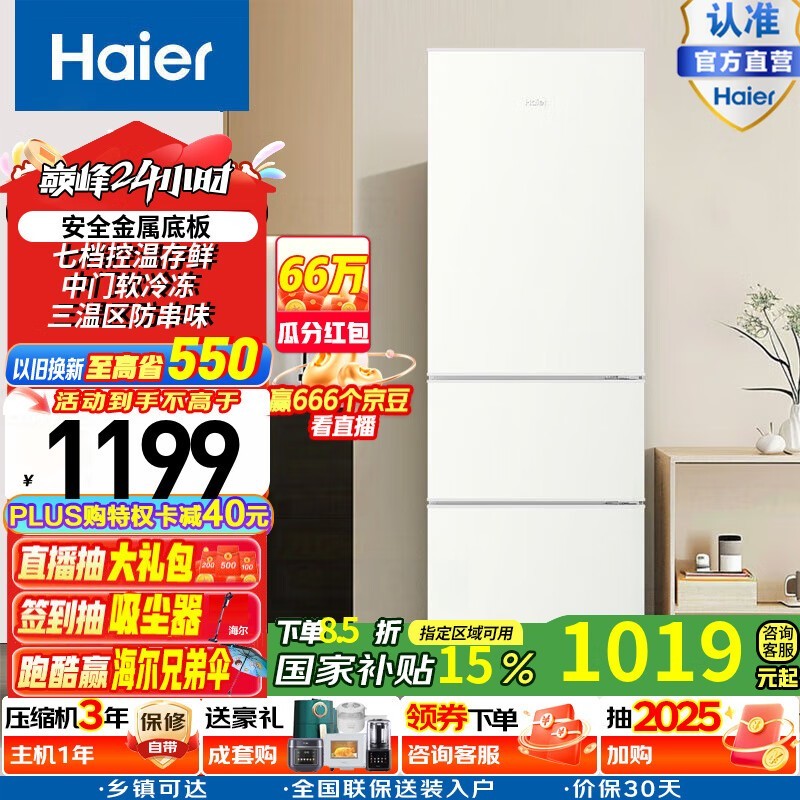 海尔BCD-216STPT三门冰箱促销:原价1299现仅929元