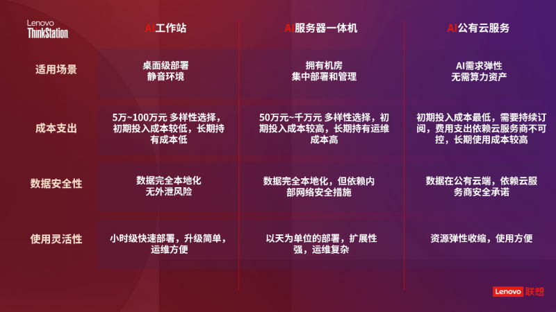 联想AI工作站的问世,有效填补了大模型及AI应用在桌面级部署领域的空白。与公有云部署方案相比,AI算力本地化部署为数据构筑了天然的安全屏障,确保核心知识资产全程物理隔离。这种"数据永不触网"的安全架构,非常契合政府、科研单位和广大企业用户等对数据主权有严格要求的应用场景。