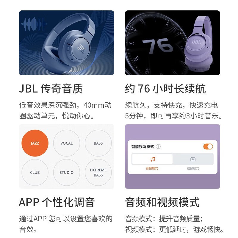 JBL TUNE720BT蓝牙耳机促销到手仅349元