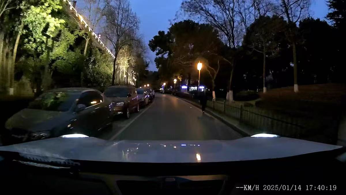 在日常使用中,白天拍摄的画面稳定清晰,色彩还原准确,能够真实反映道路情况。在夜晚,凭借良好的低噪点控制,画面纯净度高,即使在没有路灯的路段,也能较为清晰地拍摄到前方路况,但是车牌会出现模糊的情况。