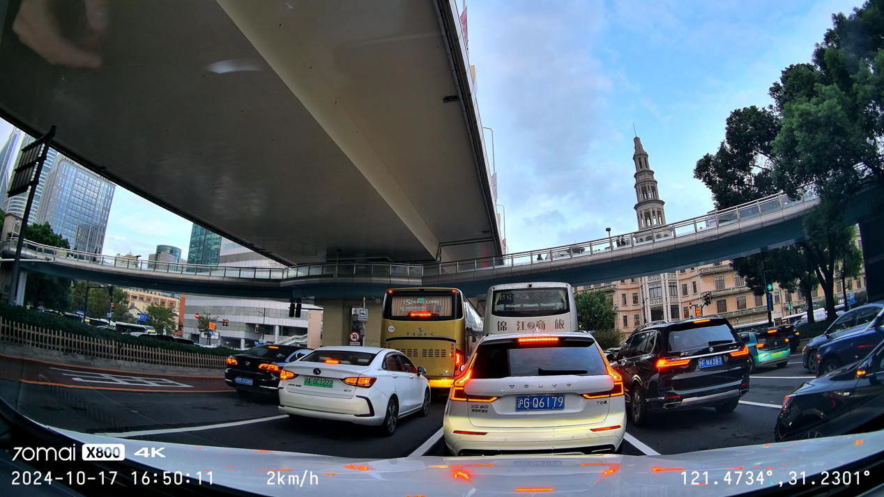 实际使用中,70maiX800的画质表现堪称惊艳。在白天强光环境下,画面色彩还原度极高,道路上的各种颜色、车辆的外观色彩等都能真实呈现,且画面细节丰富,建筑物的纹理、树叶的脉络都清晰可见。