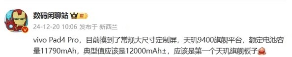 vivo Pad 4 Pro平板有望4月发布 天玑9400旗舰芯加持