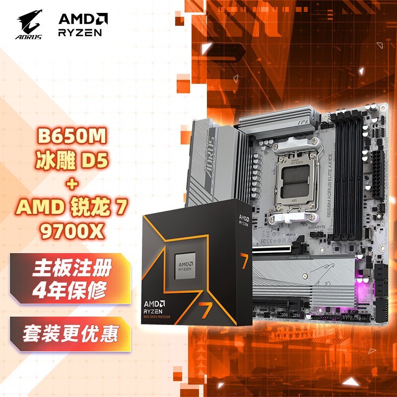 技嘉B650M电竞雕PROAX主板+锐龙79700X处理器套装抢购