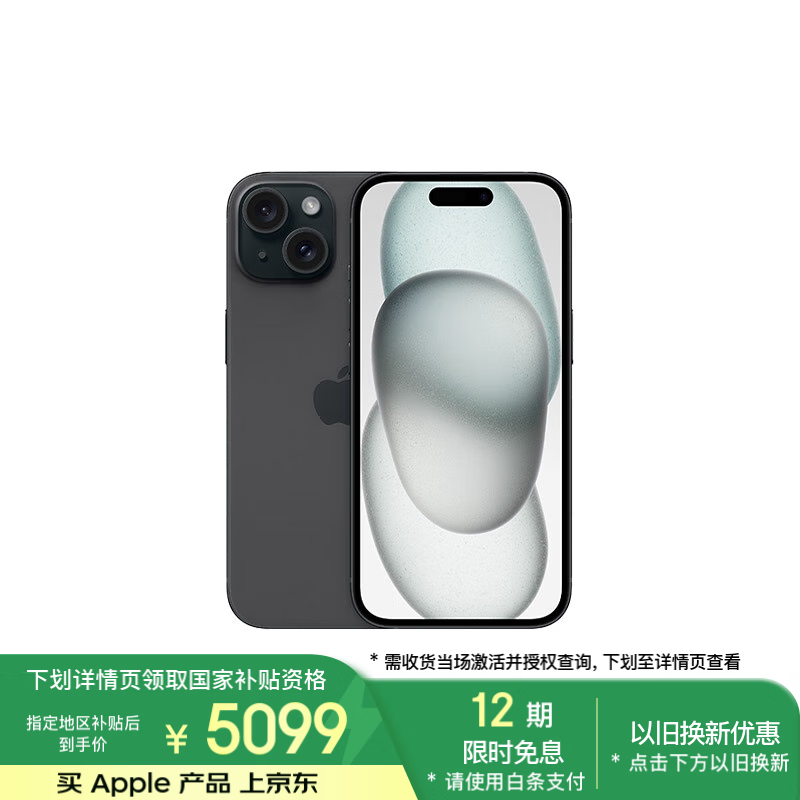 Apple iPhone 15 5G手机 256GB黑色版 京东活动价5071元