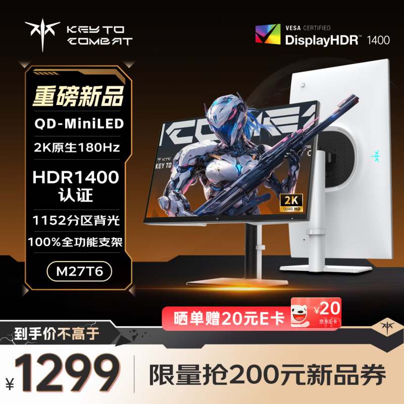KTC M27T6显示器QD-MiniLED技术1271元震撼开售