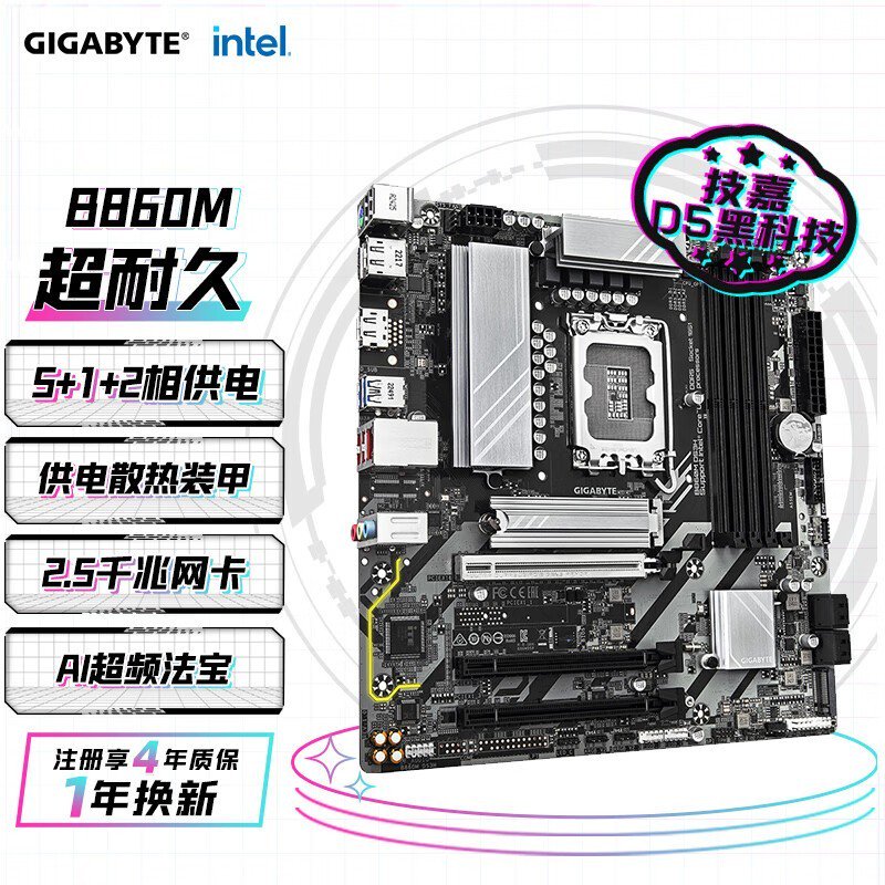 技嘉B860M DS3H DDR5主板LGA1851接口稳定耐用好价仅944元