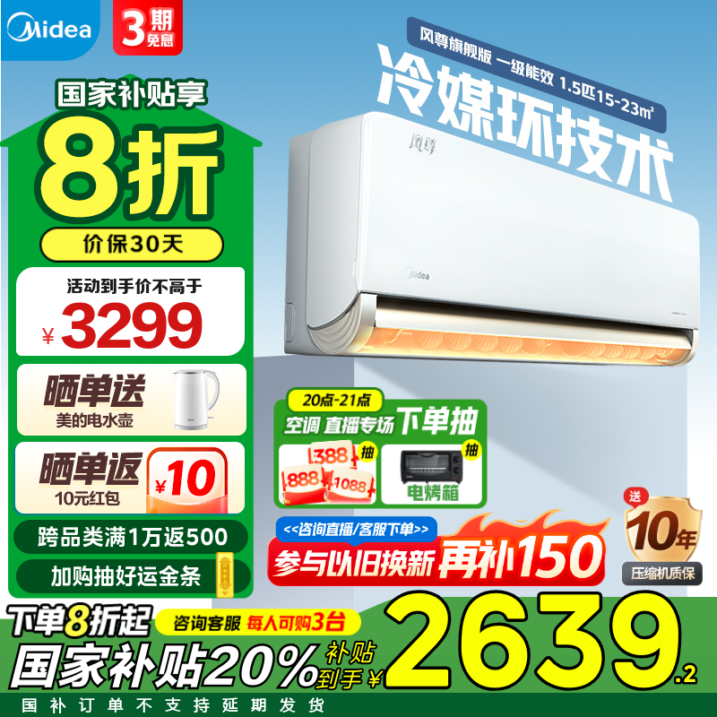 美的风尊KFR-35GW壁挂空调1匹京东特惠2349元