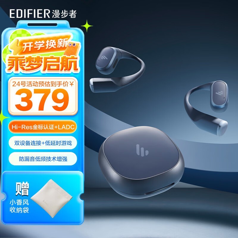 漫步者Comfo Solo蓝牙耳机骨传导挂耳式运动跑步碧落蓝
