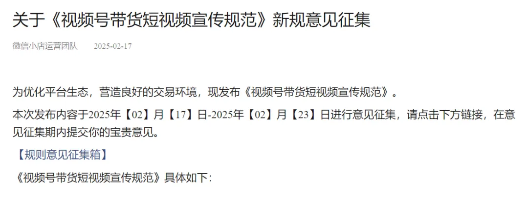 根据《视频号带货短视频宣传规范》新规意见征集(以下简称《规范》)文件,微信团队开始规范短视频带货行为。