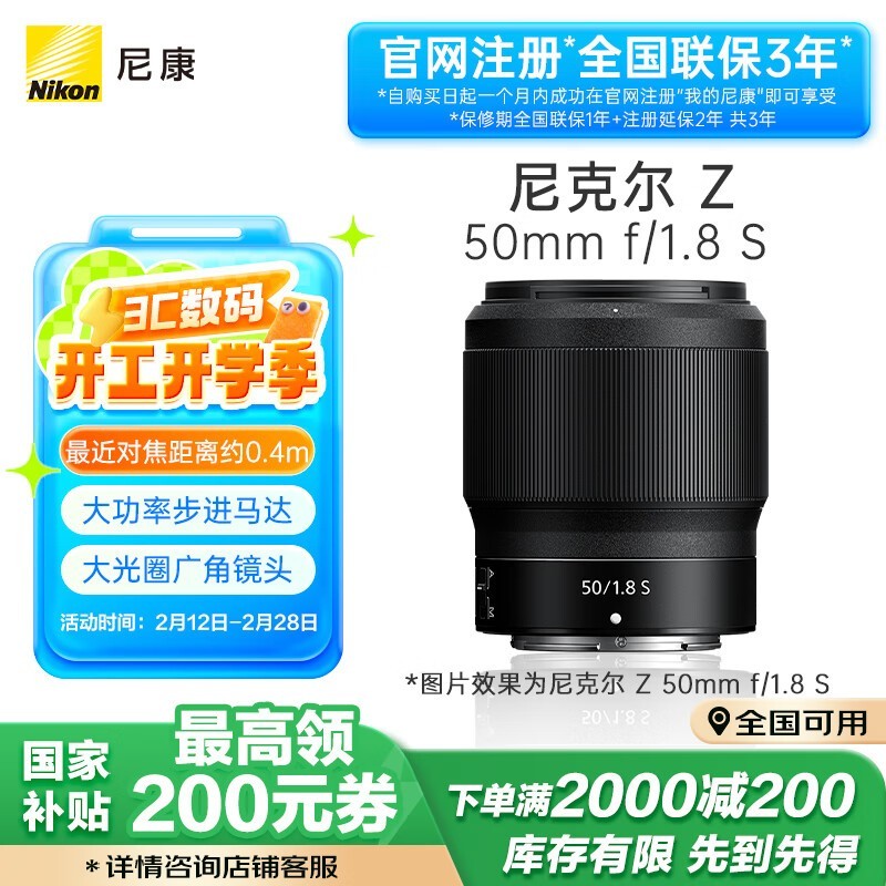 尼康Z50mmf/1.8S镜头优惠到手价3159元
