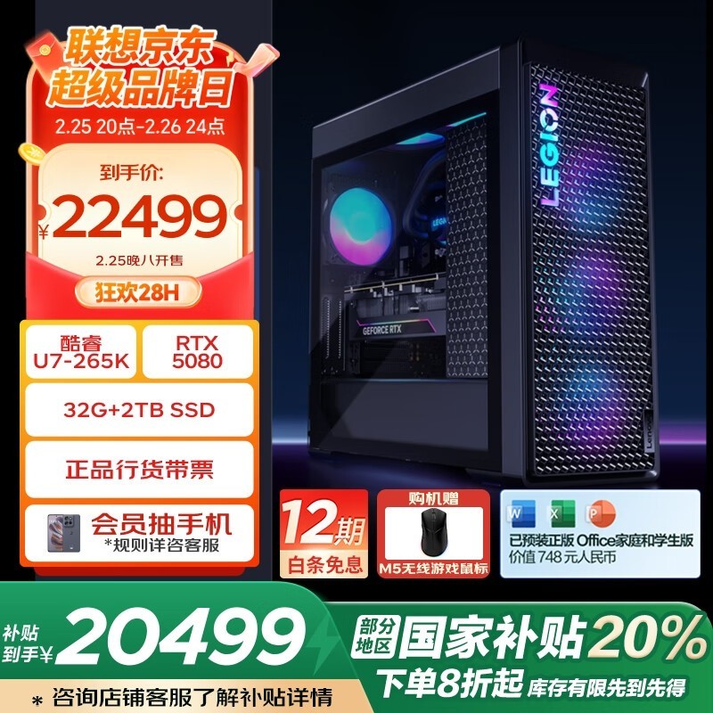 联想拯救者刃9000K 2025游戏主机U7-265K京东活动价20499元