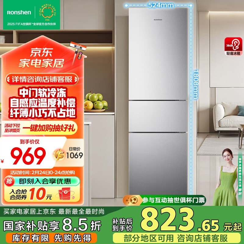 容声BCD-216D11N三开门小电冰箱216升静音节能省电租房宿舍可用