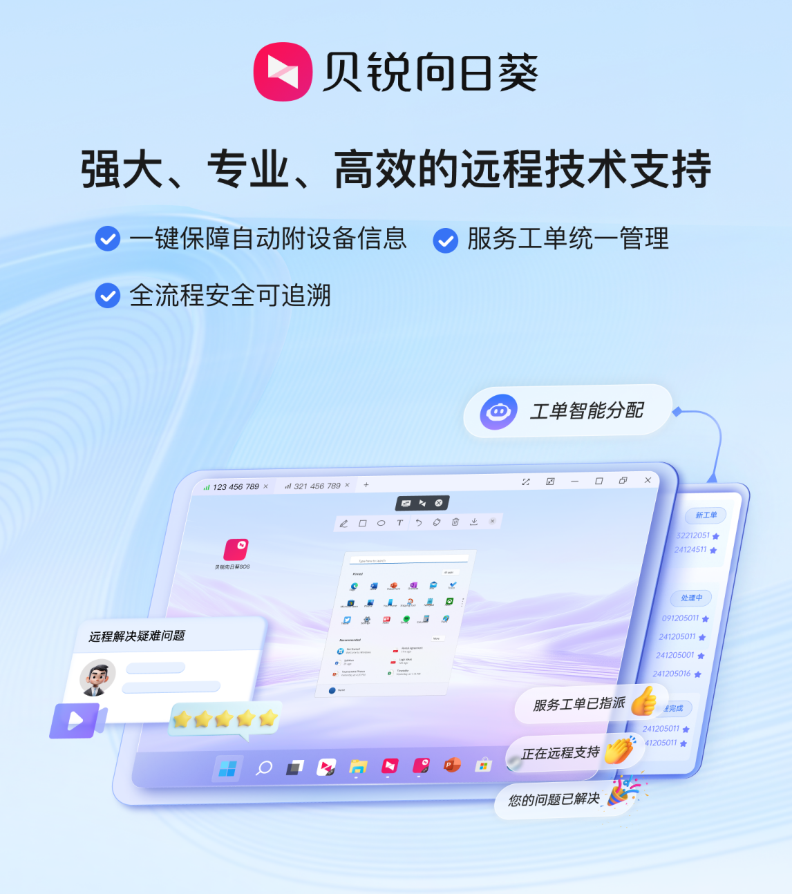 在这方面,向日葵技术支持方案融合了专业的工单体系,工单智能分派给合适的技术支持团队,建立有效的SLA体系,避免无效周转,显著提高效率。