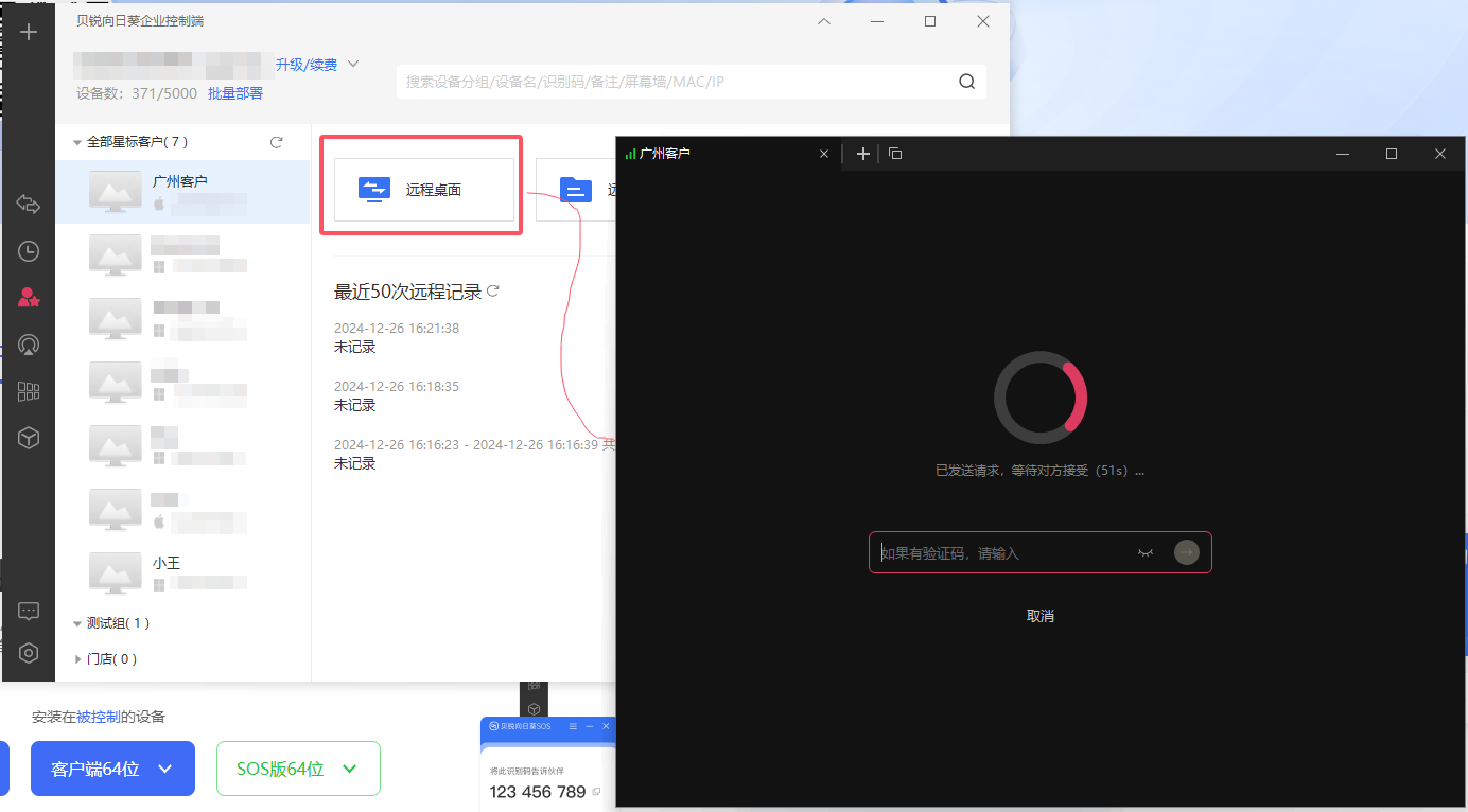 面对前者,向日葵技术支持解决方案实现了个人和企业版互通可控,大大的为客户提供了便利;面对后一种情况,售后人员也可以通过发送SOS免安装版软件,快速建立连接,这样仍然比让客户下载并安装软件更加便捷。这也是提升效率和客户满意度的重要一环。