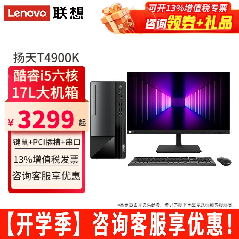 联想扬天T4900K台式机六核i5-12400税控直播剪辑家用办公电脑