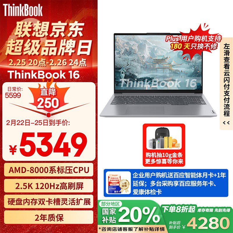 ThinkPad ThinkBook 16 2024款轻薄本R7-8845H处理器16GB+1TB