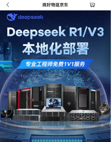 DeepSeek凭借高效的运算效率、免费开源和性价比迅速在全球走红。除了通过线上接入体验DeepSeek外,越来越多的用户尤其是企业用户开始本地部署DeepSeek,以获得更好的使用体验和满足个性化需求。为此,京东携手品牌盘点了适合本地化部署DeepSeek的台式机、工作站产品,并上线了“DeepSeek-R1系列模型应用场景与选型指南”,可为在京东下单服务器的用户提供专业工程师免费1V1服务, 全方位满足用户从选型到部署的需求。打开京东App搜索“DeepSeek”进入京东AI装备馆,即可探索适用于DeepSeek的本地化部署设备。