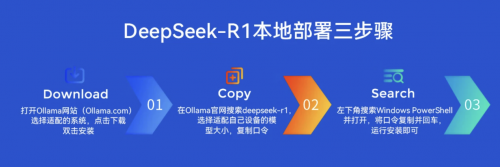 要在本地部署DeepSeek,可以按照以下三步操作。首先,访问Ollama官网,下载并安装适合操作系统的版本。接着,在Ollama官网中搜索“DeepSeek-R1”模型,根据设备性能选择合适的模型大小,并复制相应的安装命令。最后,打开Windows PowerShell,粘贴并运行复制的命令,即可完成模型的安装。