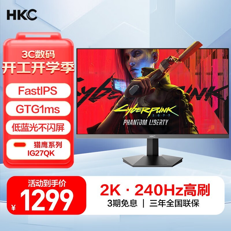 HKC IG27QK 27英寸IPS电竞显示器京东到手仅1279元