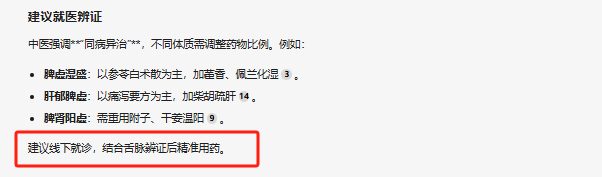 在AI给出的医疗建议及药方下面,通常会有一行声明如“建议线下就诊”、“请以医生处方为准”。