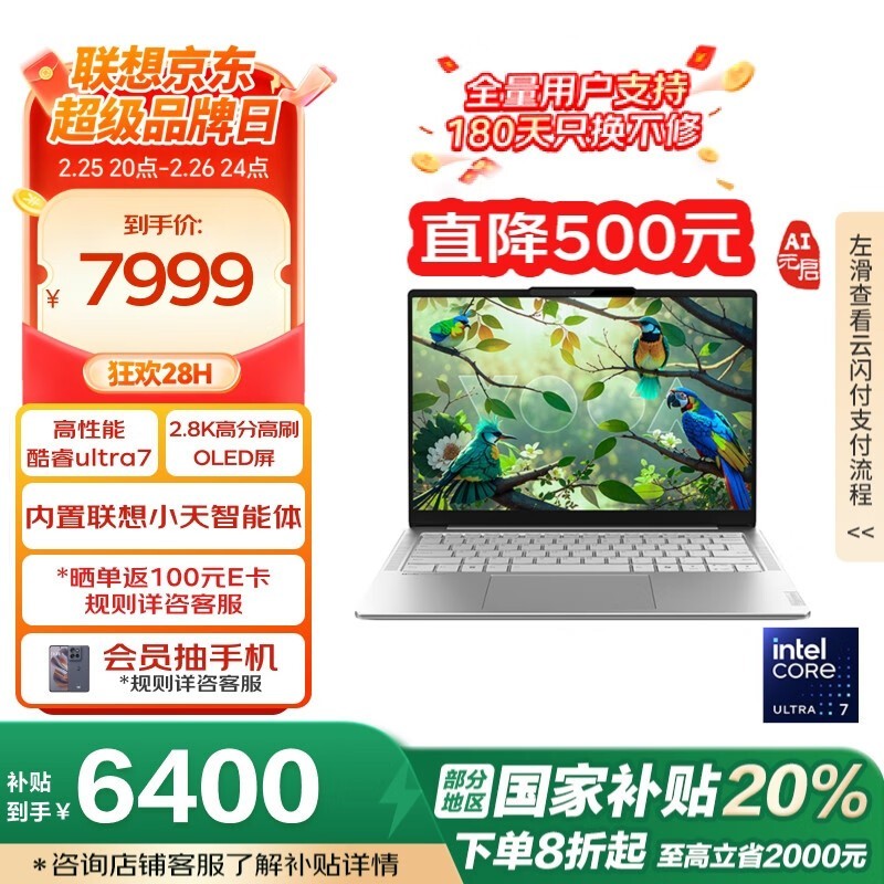 联想YOGA Air 14 AI元启Ultra版轻薄本京东特价7999元