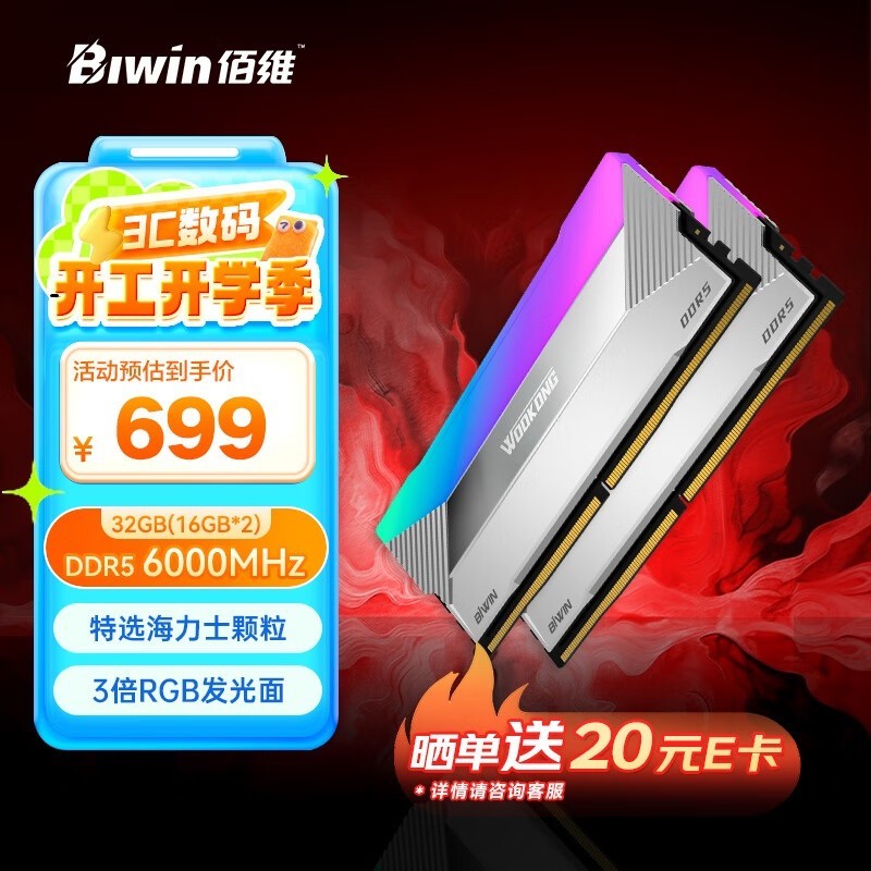佰维DX100 DDR5 6000MHz RGB灯条32GB套装仅679元