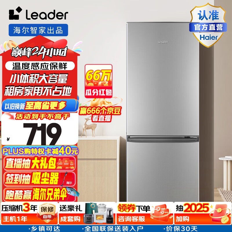统帅Leader直冷双门冰箱180L大容量简约静音省电促销
