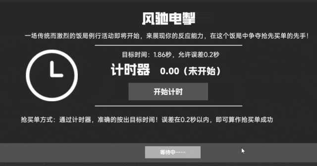 酒足饭饱过后,由谁来买单也是一门大学问。要知道,商业饭局上总有一群人和你争着出风头,要想成为最大的凯子……哦不对,是最慷慨的经理,你得眼疾手快,在指定的区间内按下买单键,前后误差不能超过0.2秒: