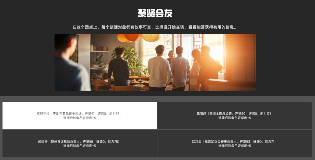 请客吃饭能提高和其他球队经理、青训基地负责人、足协领导的好感度,偶尔也能在饭桌上探听到一些真假未知的江湖流言。