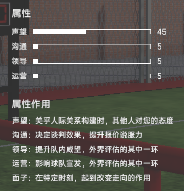 像“面子”“声望”这种属性,是其他足球运营模式里鲜有出现的,想提升它们需要通过什么方式?