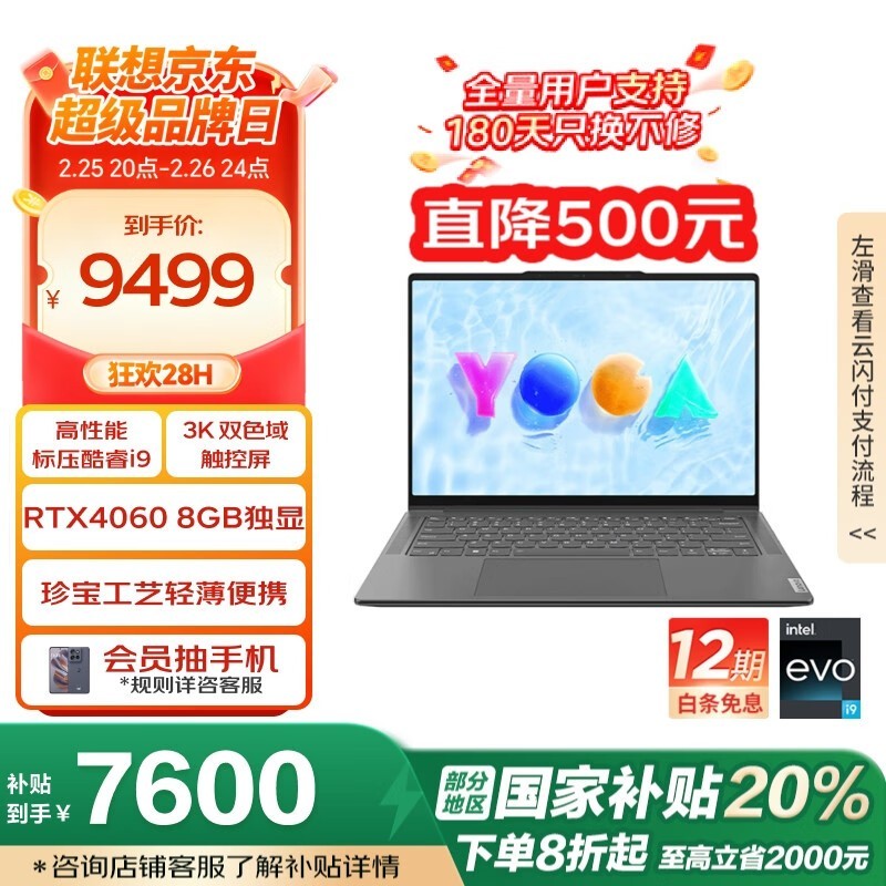 联想YOGA Pro14s至尊版14英寸轻薄本学生会员价7155元