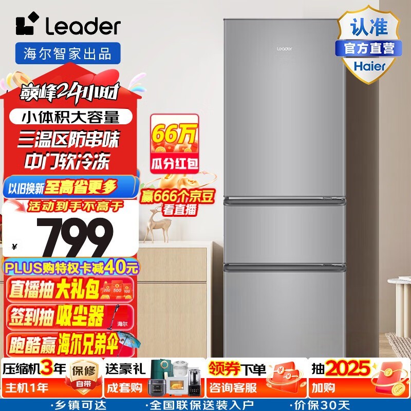 统帅BCD-218LLC3E0C9直冷三门冰箱促销到手仅749元