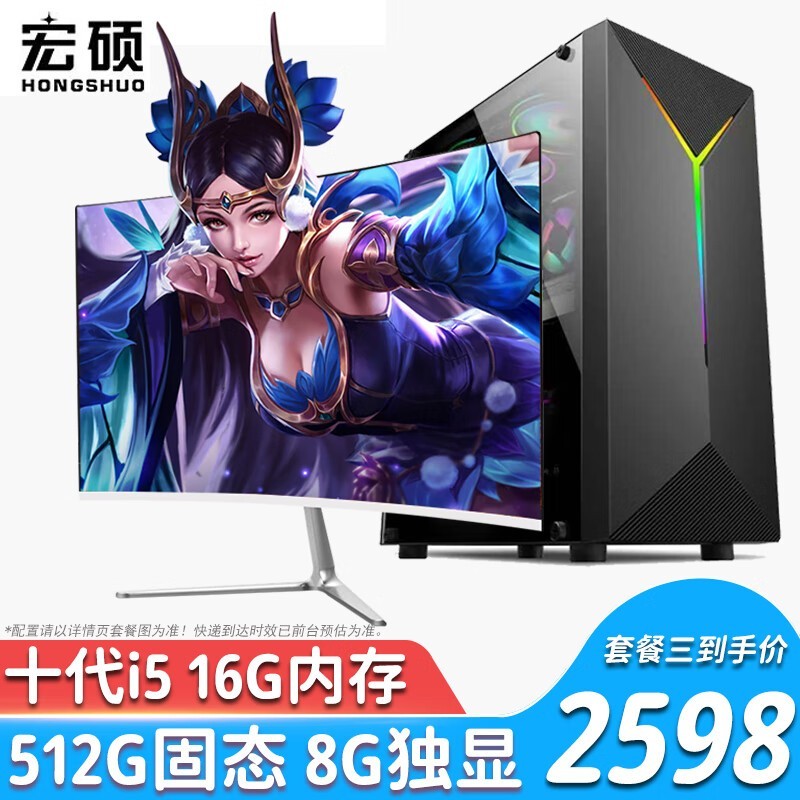 宏硕电竞游戏办公电脑主机整机24英寸显示器