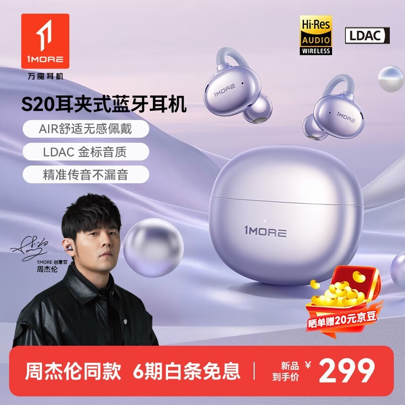 1MORE S20耳夹式蓝牙耳机紫色版周杰伦同款
