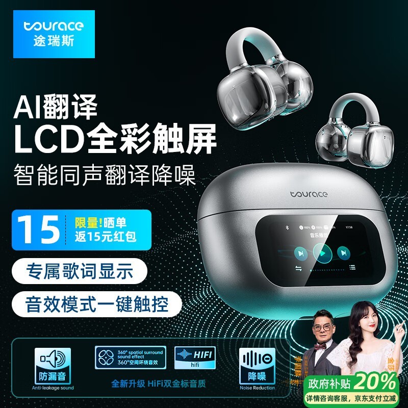 途瑞斯翻译蓝牙耳机夹耳式AI会议助理多国语言翻译