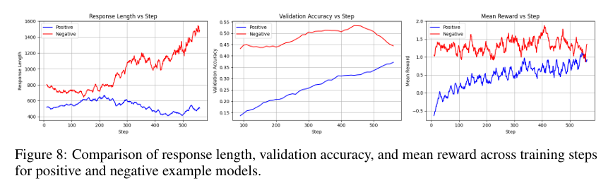 故而,更长的输出长度不是训练过程里衡量推理性能的有效指标,只能当成自然产生的副产物看待。对测试集分数与模型输出的观察,是更稳妥的做法。