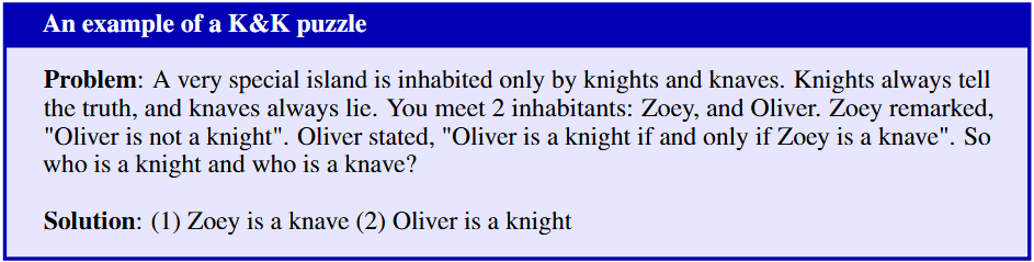 常见的数学训练集在问题难度上无明确界限,数学问题往往具有不定的逻辑深度、知识背景要求,对可控的分析实验不友好。于是为了分析推理模型的机制,作者转向了完全由程序合成的的「逻辑谜题」作为训练数据。