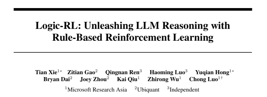 论文标题:Logic-RL: Unleashing LLM Reasoning with Rule-Based Reinforcement Learning