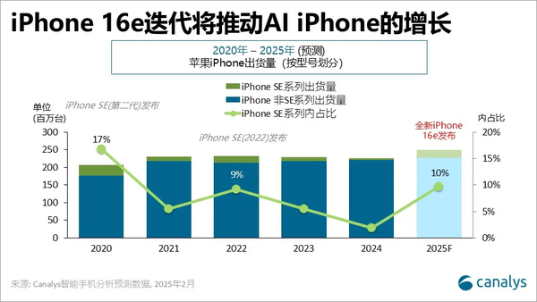 iPhone 16e将在苹果2025年全球推广Apple Intelligence的过程中起到关键作用,为入门级用户提供进入iOS生态系统的途径。Canalys表示,这一定价策略与苹果积极推动AI的战略一致,苹果计划将Apple Intelligence引入全系列产品。预计这一战略将使苹果在2025年成为出货量最多的AI手机厂商。