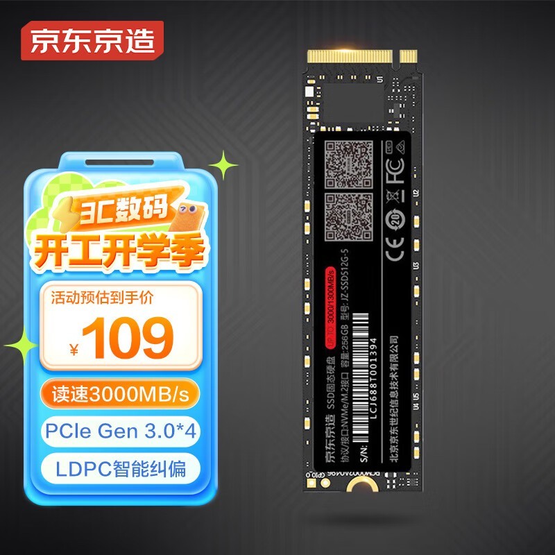 京东京造256GB SSD固态硬盘M.2接口仅109元