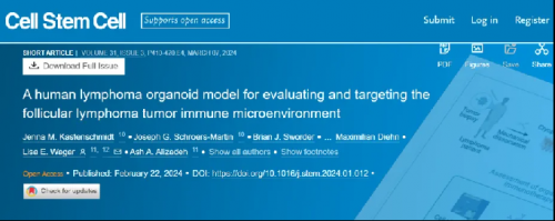 [1] Ash A. Alizadeh,Lisa E. Wagar,et,al.A human lymphoma organoid model for evaluating and targeting the follicular lymphoma tumor immune microenvironment. Cell Stem Cell. 2024 Feb 20, DOI:2024.01.012