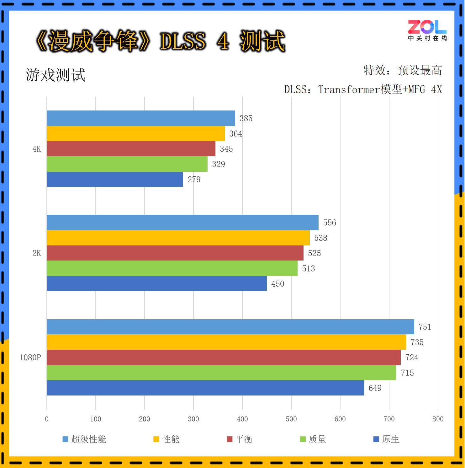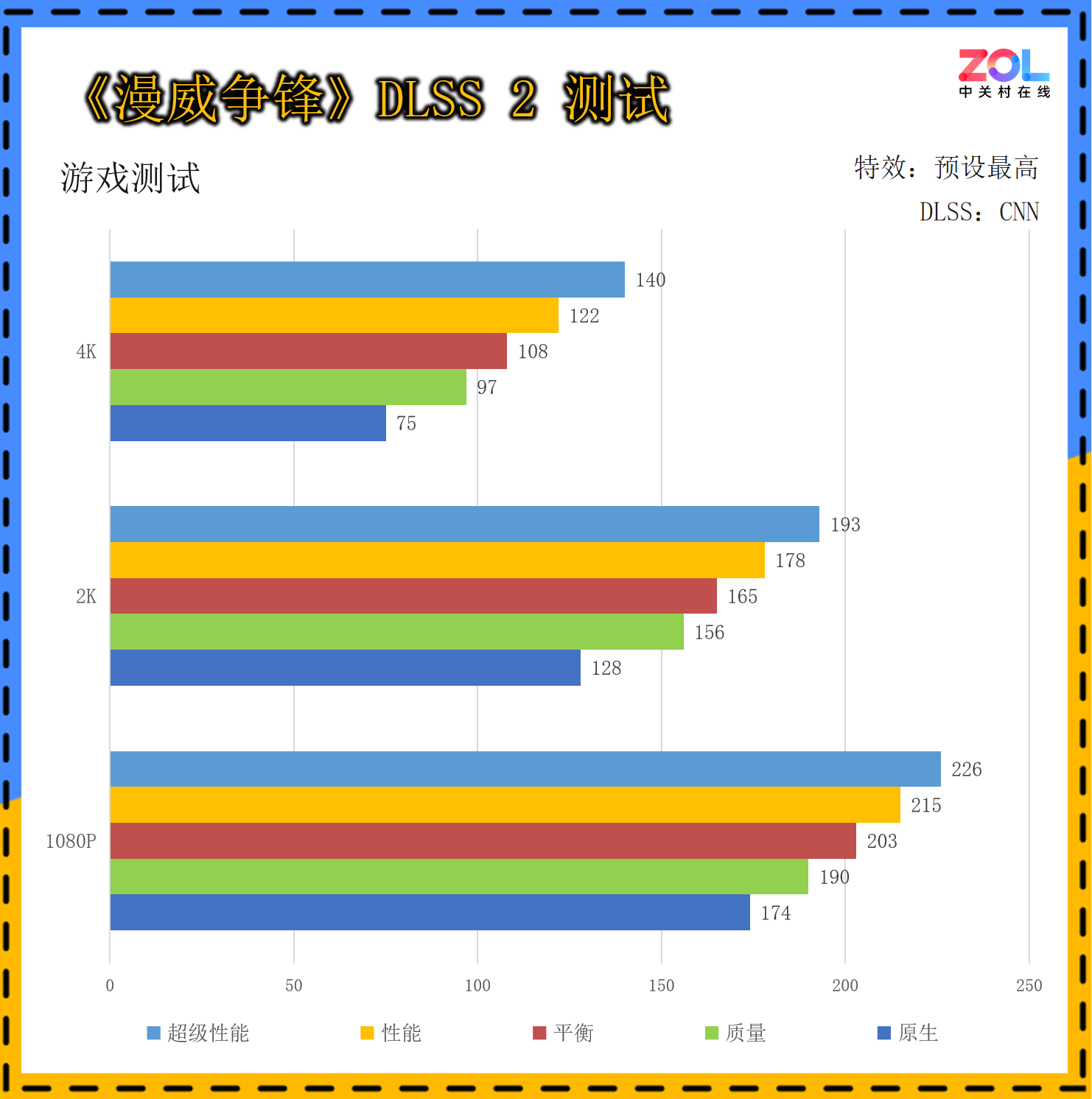 对于一款竞技网游来说,高帧率比画面更重要,使用RTX 5070 Ti 在2K分辨率下,DLSS 2平衡模式只能够勉强达到165帧,属于是跑满目前普遍的2K入门电竞显示器水平。