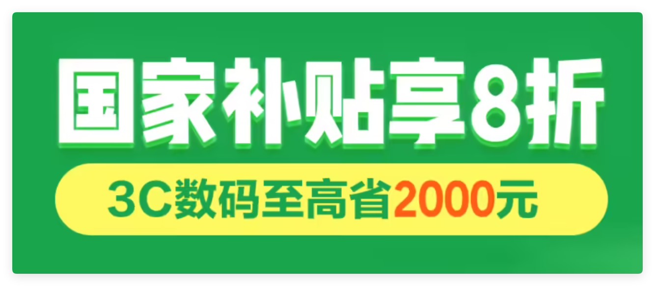 手机 / 平板 / 3C 数码支持 8.5 折政府补贴,不超过 6000 元的产品至高立减 500 元。