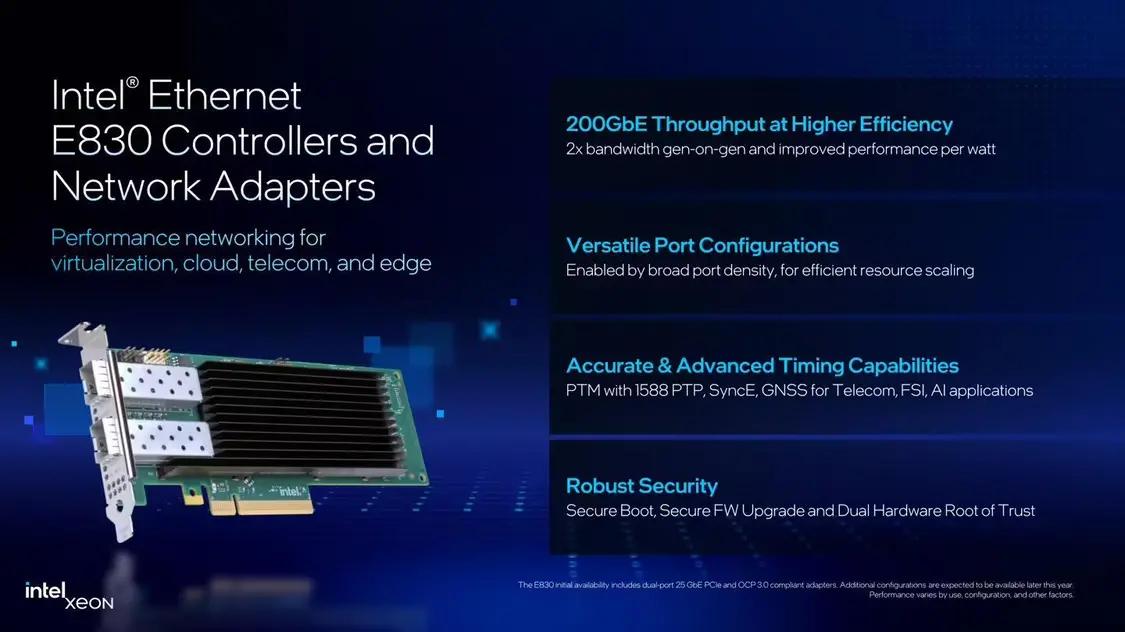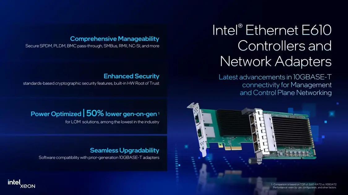2 月 25 日消息,英特尔今日宣布推出 E830 和 E610 这两款以太网控制器(芯片形态)和网络适配器(AIC 附加卡形态),分别至高支持 200GbE 和 10GbE 网络。