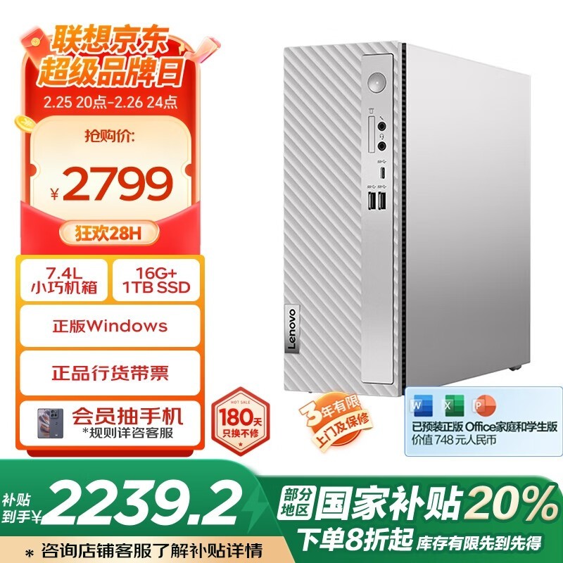 联想小新台式机i5-1235U处理器天骄学堂学习电脑主机京东特惠
