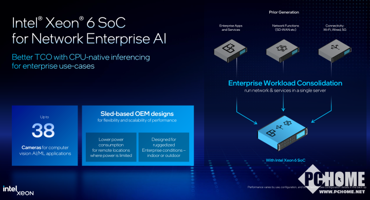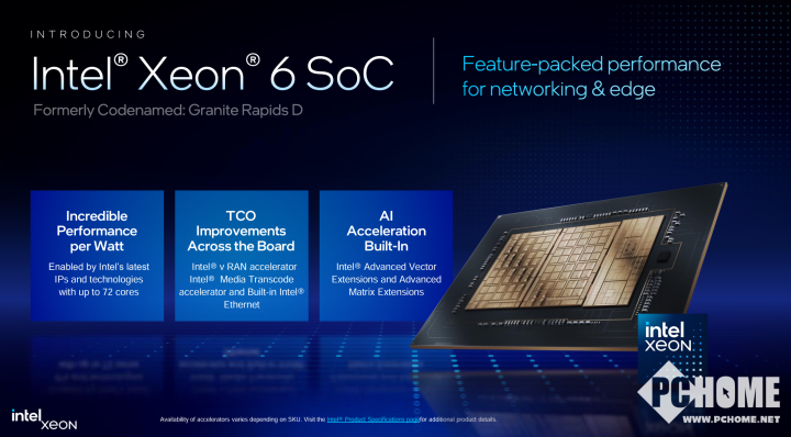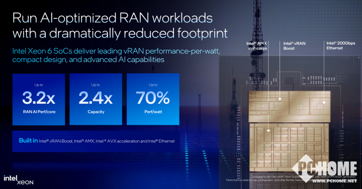 英特尔还宣布推出一款面向网络和边缘应用的系统级(SoC)英特尔至强6处理器,旨在提供高性能和能效。在AI驱动的时代,凭借其内置的面向虚拟化无线接入网(vRAN)、媒体、AI和网络安全的加速器,满足对网络和边缘解决方案日益增长的需求。