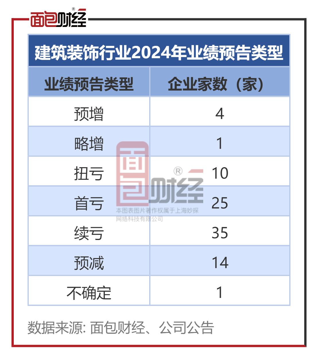 最新数据显示,根据申万行业分类,A股建筑装饰行业共计164家公司,其中90家公司已公布2024年年度业绩预告。